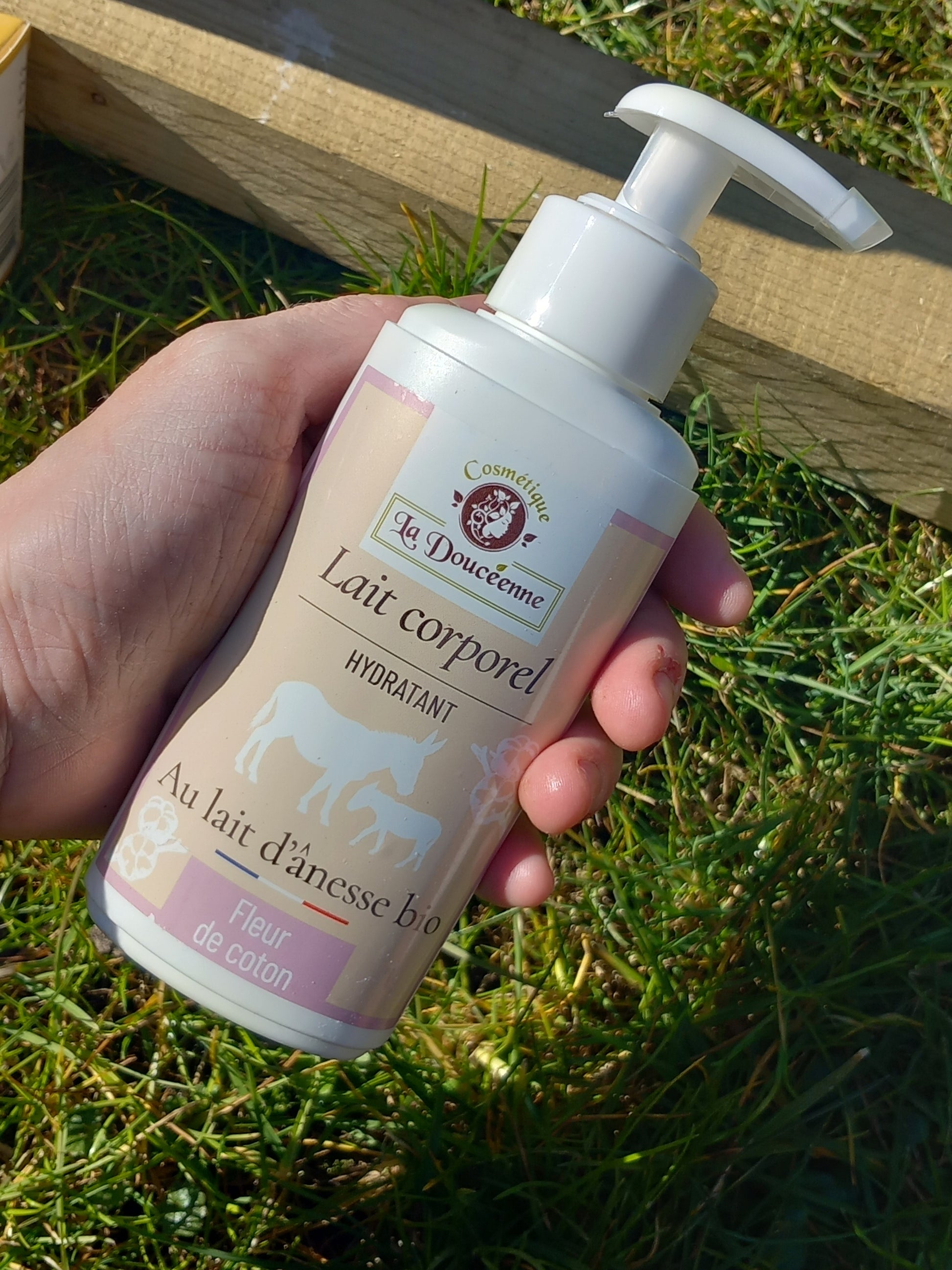 lait corporel hydratant est enrichi au lait d'ânesse (20%) et au beurre de karité, il apporte toute l'hydratation dont votre peau a besoin. Léger parfum fleur de coton pour un moment de détente garanti !
